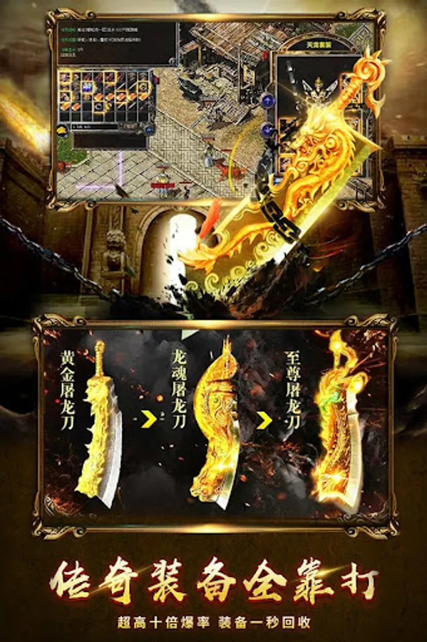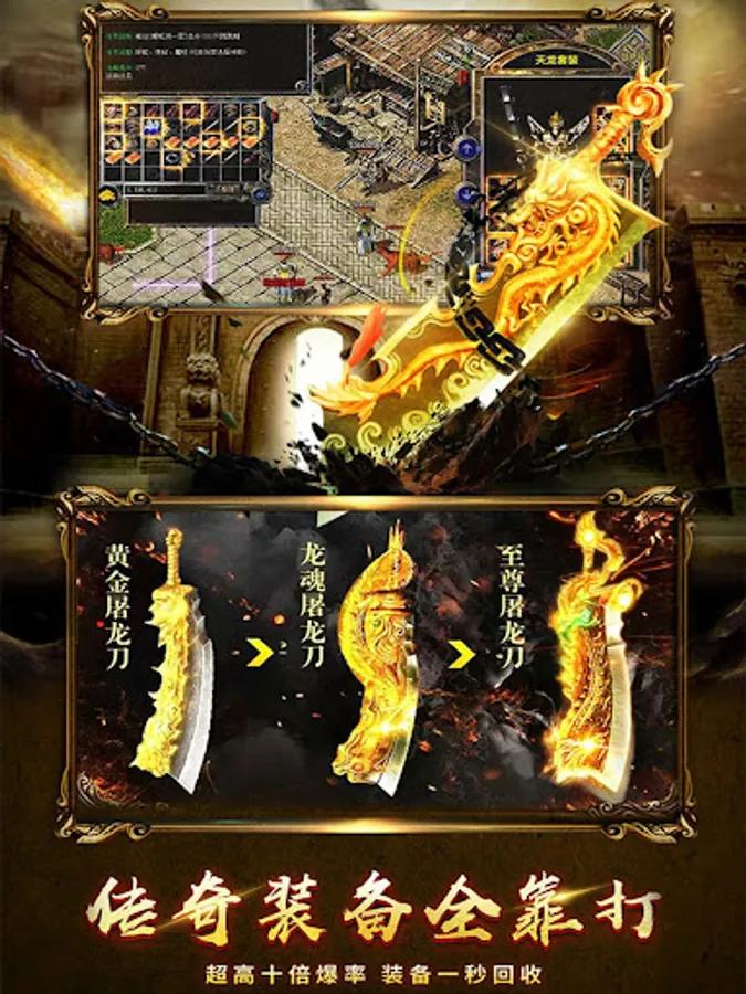 盛世传奇来了,复古传奇私服单职业,热血传奇世界沙巴克,盛大正版怀旧经典传奇,烈焰裁决至尊传世单机挂机版,蓝月龙城战歌打金高爆回收,屠龙一刀无双,荣耀永恒雷霆英雄!