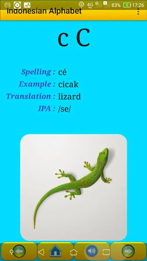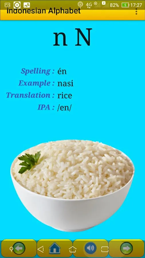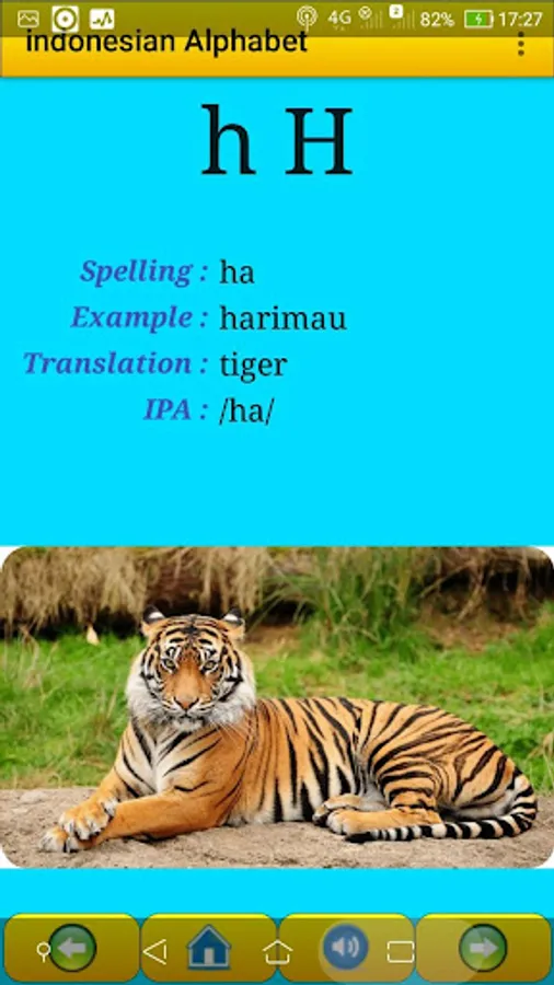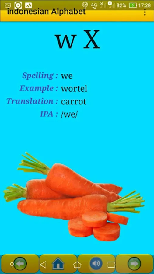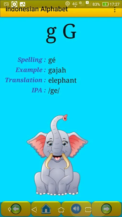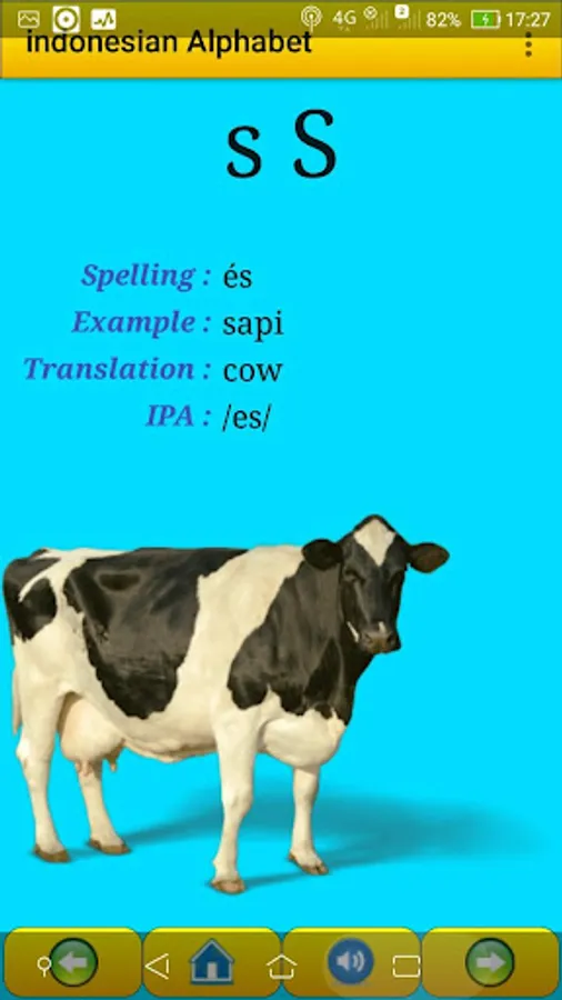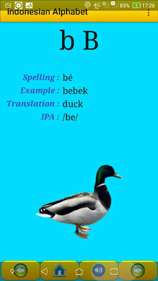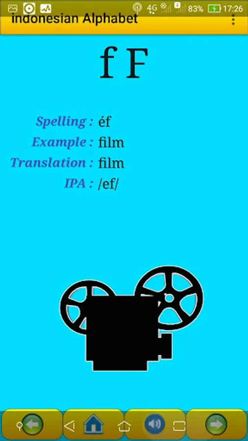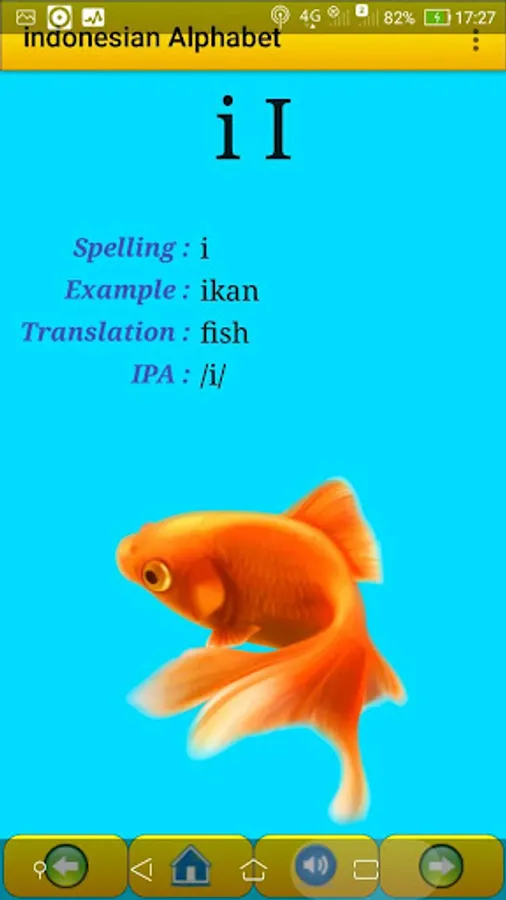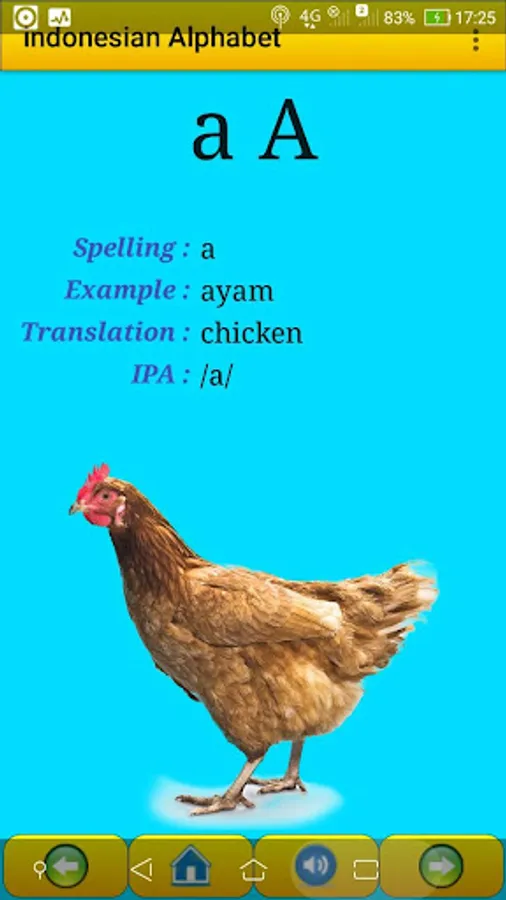 This app contain all Indonesian alphabet ,Exactly 26 letter, This App help strangers students in universities of Indonesia for learning and speaking the alphabet and the pronunciation , this course are free and full , no feature are hidden ,The course gives basic spoken and written knowledge of the Indonesian language .