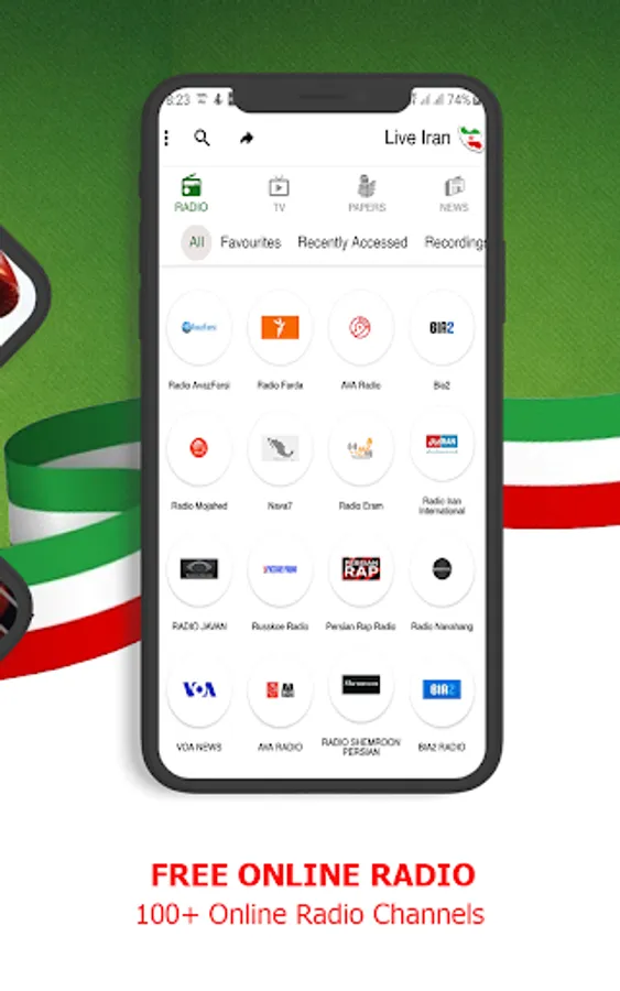Download Iran/Persian Radio Stations FM & AM NOW for FREE and enjoy FREE Online Radio Live Streaming! Feel the beat of the newest hits of your favorite Persian Artists! Enjoy our favorite program online all around the regions. With Persian Radio Stations FM & AM you will find Home Away from Home!!!