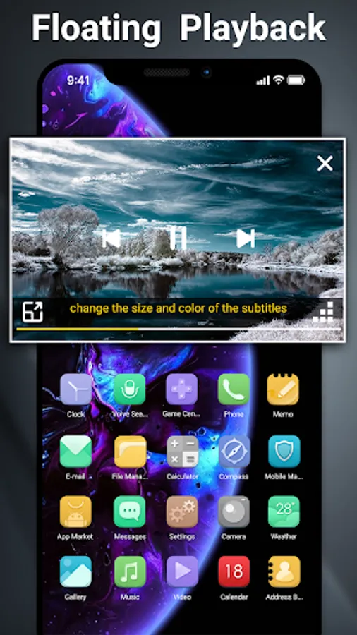 - The floating video player overrides other apps and can be moved and resized easily. You can enjoy video on the split-screen and use other apps as usual.