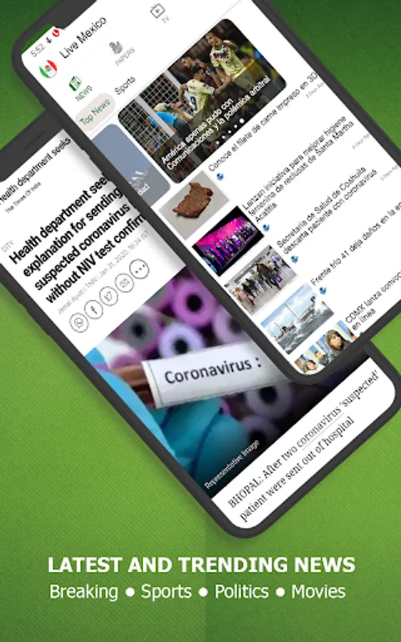 Mexico News app brings you the latest stories, videos and photos from Mexico. Stay connected with the latest news from Mexico and around the world. Get easy access to live TV, videos, photos, news beeps, football scores and more on your device. Live Mexico-Mexico Newspapers App-News app-Mexico News Headlines-Top Mexico "Mexico news" app is the faster way to browse Mexico News. You can read latest, breaking news, sports, business, entertainment, TV shows, Life, health etc News.