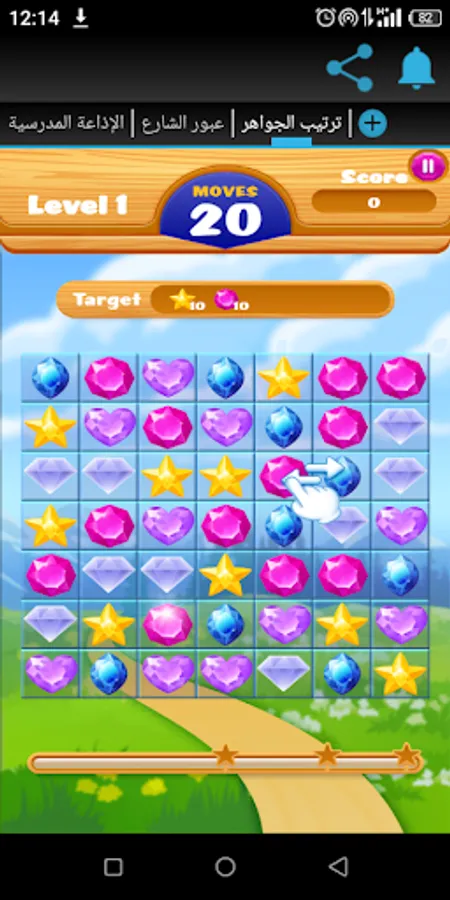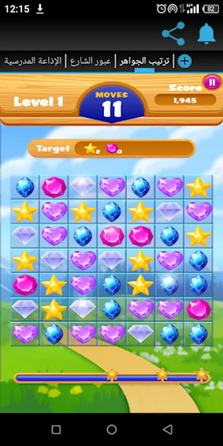 2 Arranging gems A game that requires assembling at least three of a kind horizontally or vertically A very entertaining game that requires great concentration