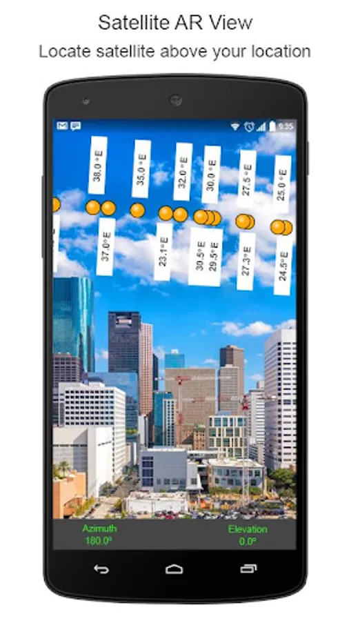 Use augmented reality view to show where is satellite on camera view in the sky. Get realistic view to the sky to make sure there is a line of sight (LOS), i.e. there is no obstacles, such as tree branches or any hurdle, between the satellite dishpointer and the satellite itself. All major tv satellites are in the database so it can be used anywhere in the world. You will get one of the best augmented reality technology so far using our satfinder quick dish aligner app. Point your phoneβs camera to look at all available satellites for your current location in real time.
