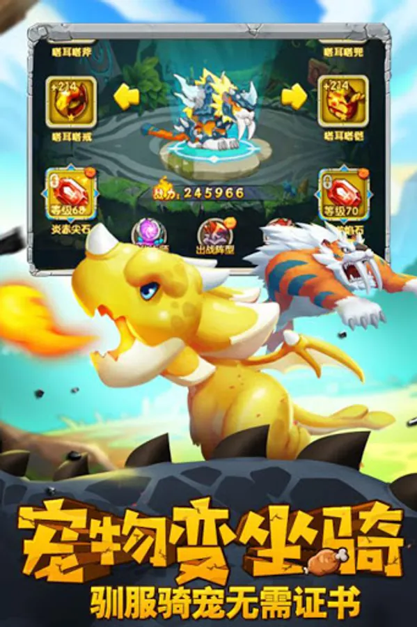 Players can improve the combat effectiveness of individual pets and partners by raising the level of pets and partners, collecting enough fragments to break through. At the same time, players can also greatly improve individual partners by upgrading the protagonist and partner's riding, wings, magic circle and guardian systems. The combat power of the player provides a super boost for the player to become the strongest tribal warrior!