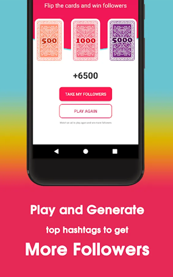 Become a Tik Tok sensation! 😍 Download our app now and get real fans and followers ⭐⭐⭐⭐⭐. Win followers by playing a game - flip cards to reveal potential fans 💯. No coins or money needed. Watch ads to play more and win big!