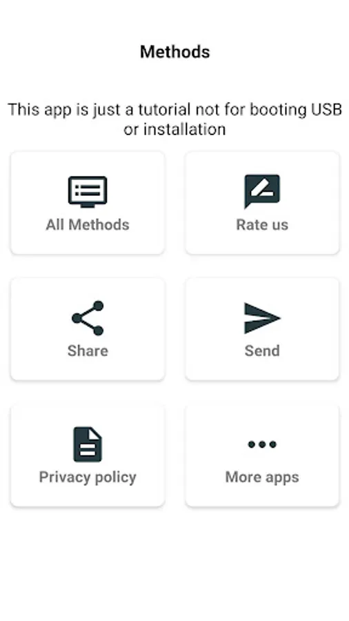 Disclaimer: This app is intended solely for educational purposes, providing insights into Windows installation and USB booting procedures. It functions as a tutorial and does not perform USB booting.