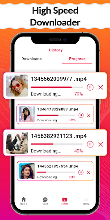 ☞ Built-in file manager. Pause, resume, and remove downloads anytime. Play it, share, and delete the files with one video downloader app.