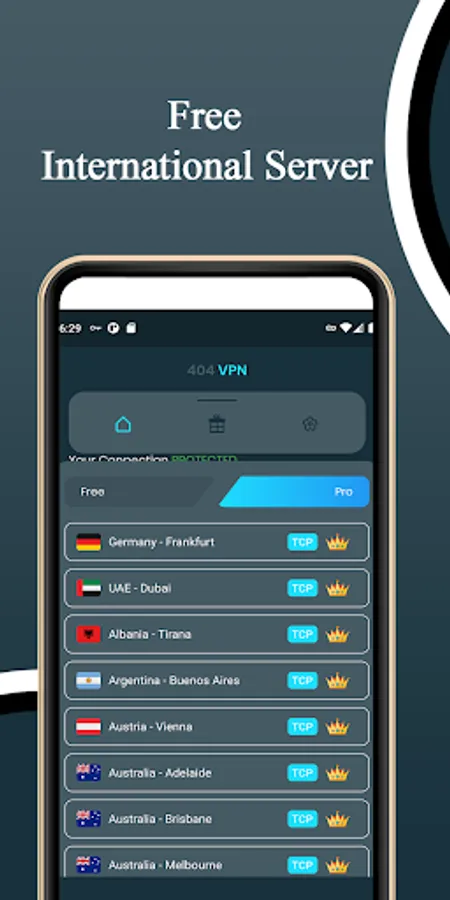 Download the secure, fast and free VPN 404 Pro! Secure your online activities and enjoy your favorite sites now!