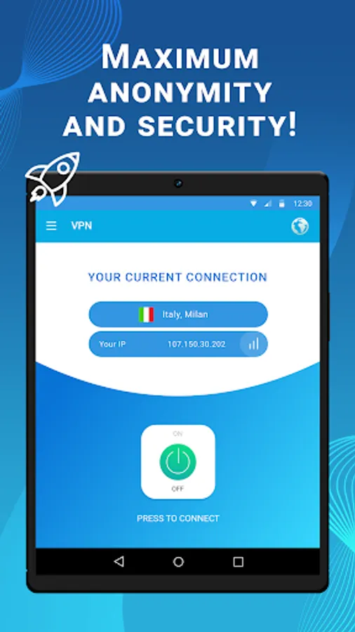 Install Fast, free VPN proxy server, private & secure app and enjoy high-speed stable Internet connection, make yourself safe online and forget about geo-restrictions!