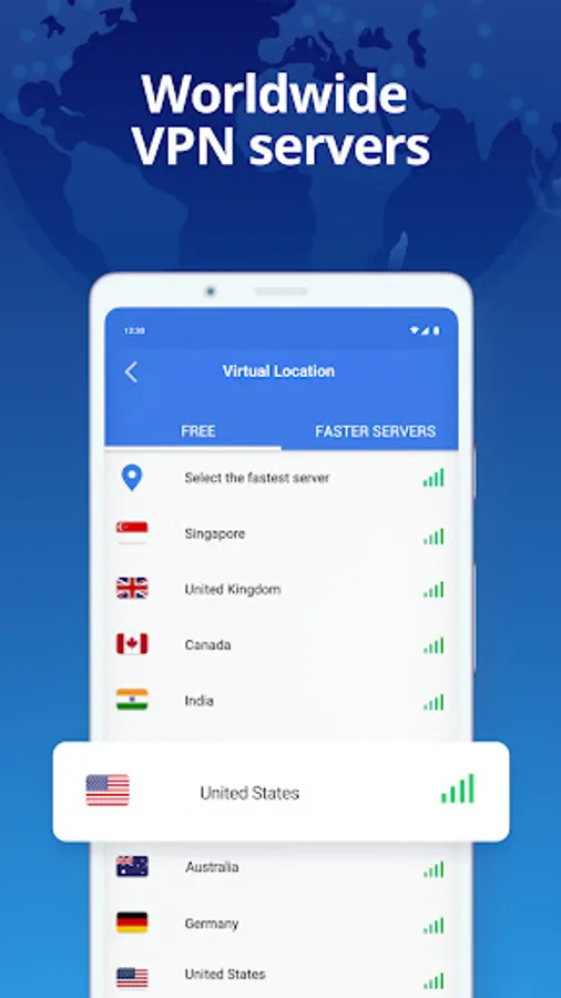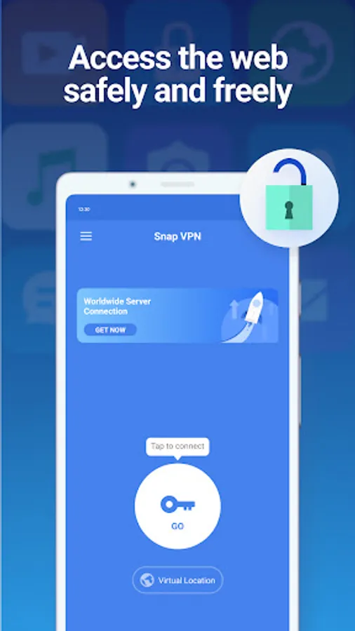 Snap VPN provides you with the fastest vpn servers of global countries in the server list. You can access websites, apps, videos, social network and all kinds of web resources with super fast speed by connecting to the fastest server of your desired server location.