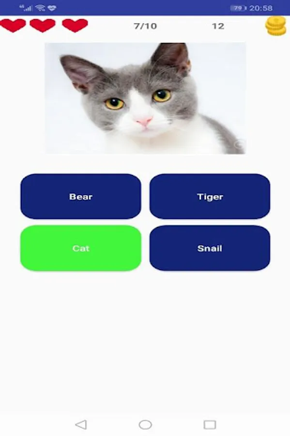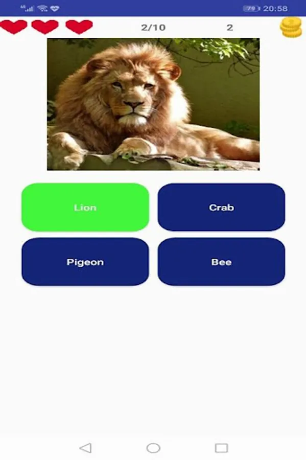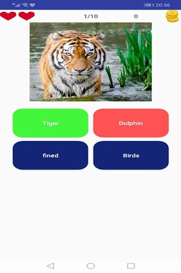 The second part is a test of the extent to which the names of the animals are preserved by displaying the image of the animals and asking the user to choose the correct answer