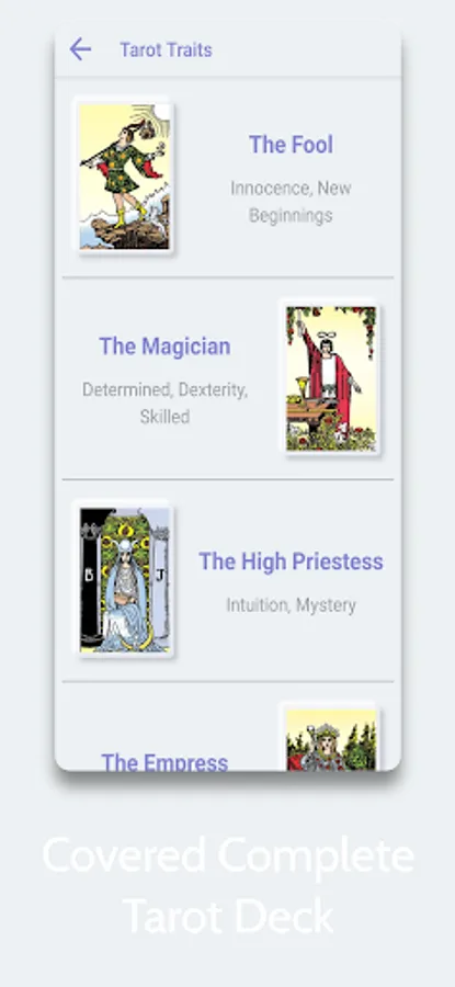 The Ryder Waite tarot deck images and meanings create a lens through which you can explore each day. This free tarot reading app may help you practice self-control as you meet daily challenges regarding work, communication, health, finances, and relationships. Tarot card meaning will give you an idea of what your day might look like today. If you don’t like what it has to say, maybe changing your mindset to something more positive or taking some sort of action will give you a better outlook by this tarot reader app.
