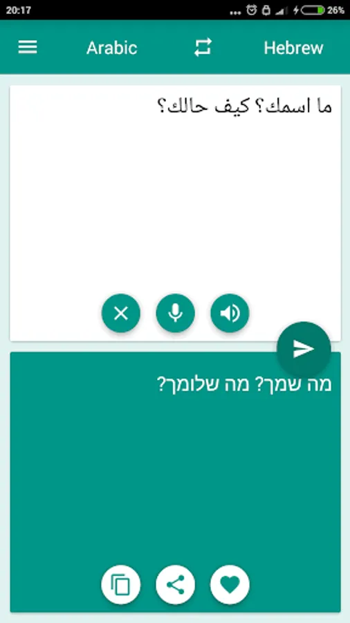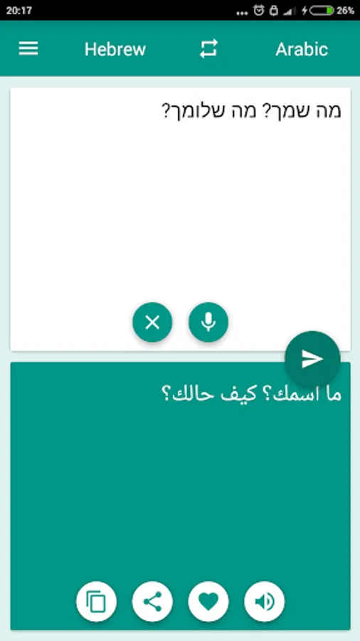 This Free translator can quickly translate from Arabic to Hebrew and Hebrew to Arabic (العربية-العبرية المترجم, עברית-ערבית מתורגמן) words as well as complete sentences. Instant translation and the full validity of the words.