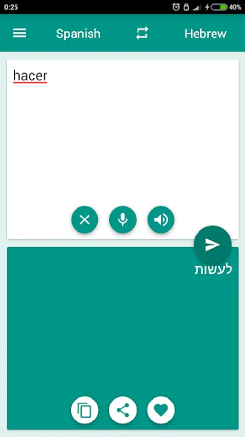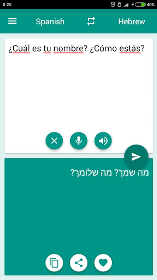 This Free translator can quickly translate from Spanish to Hebrew and Hebrew to Spanish (Traductor Español-Hebreo, מתורגמן עברית-ספרדית) words as well as complete sentences. Instant translation and the full validity of the words.