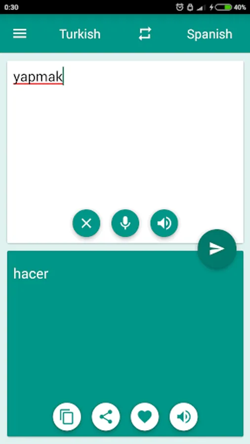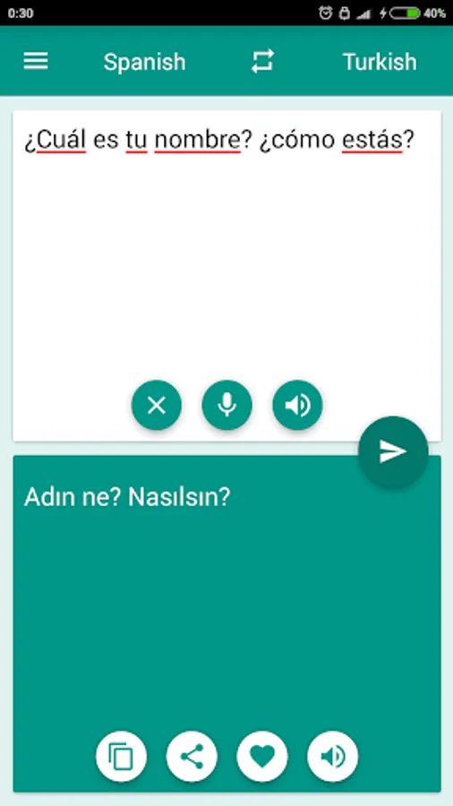 This Free translator can quickly translate from Spanish to Turkish and Turkish to Spanish (Traductor español-turco, Türkçe-İspanyolca Çevirmen) words as well as complete sentences. Instant translation and the full validity of the words.