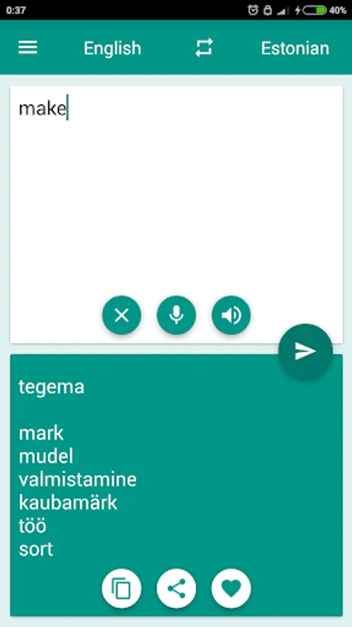 This Free translator can quickly translate from Estonian to English and English to Estonian (Eesti-Inglise Tõlkija) words as well as complete sentences. Instant translation and the full validity of the words.