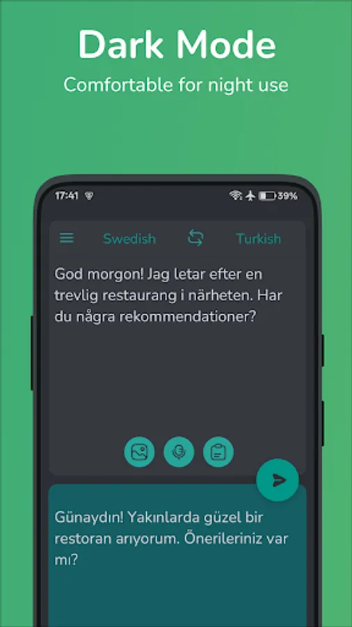 Swedish-Turkish Translator - your smart AI-powered pocket translator for Swedish and Turkish!