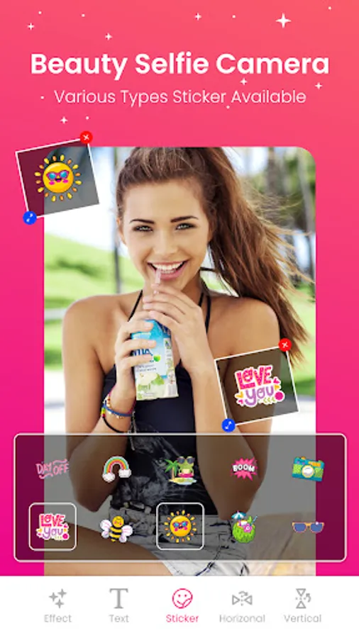 :- Beauty Selfie Camera Beautify Beauty editor camera with multi filters & stickers photo effect for you to add funny stickers.