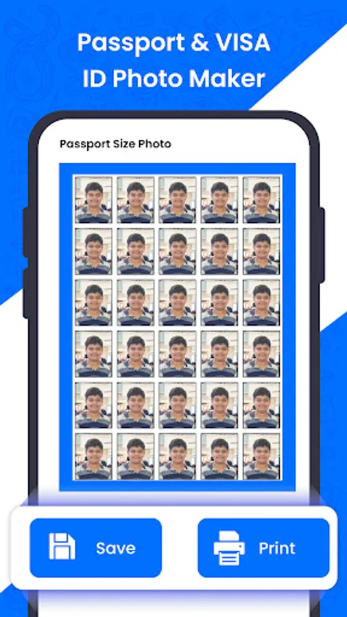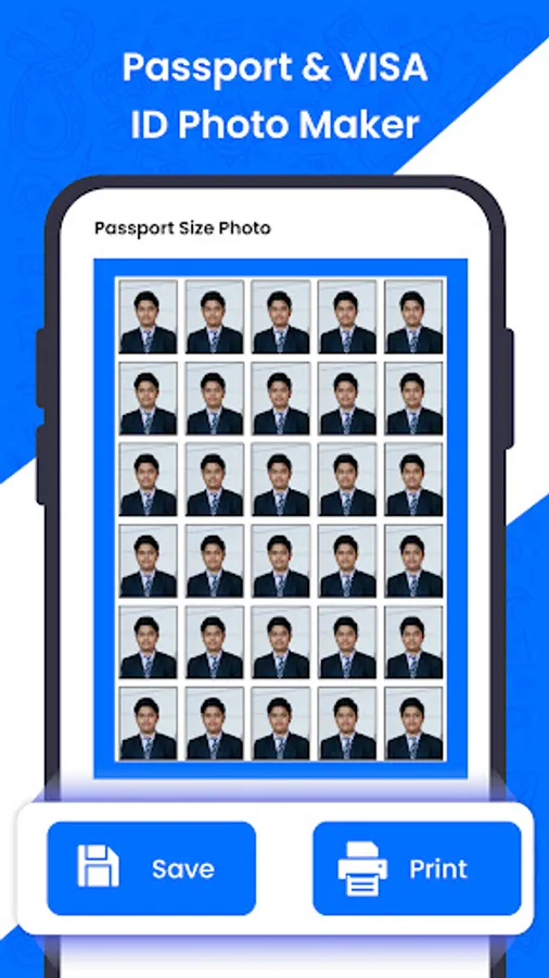 :-app among free passport photo maker, editor and photo print apps. This app lets you save money by combining standard passport, ID or VISA photos into single sheet of 3x4, 4x4, 4x6, 5x7 or A4 paper. Then you can order prints from print service providers.
