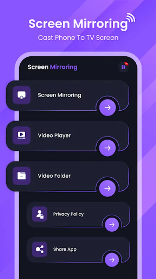 Screen Mirroring with TV App will assist you to scan and mirror your phone screen on smart TV/Display. With the Screen Mirror app, screen share is fast and straightforward.