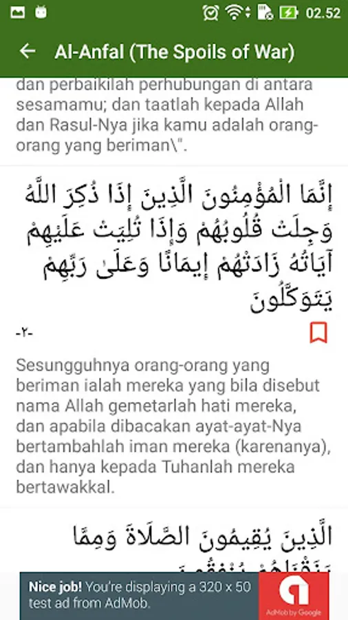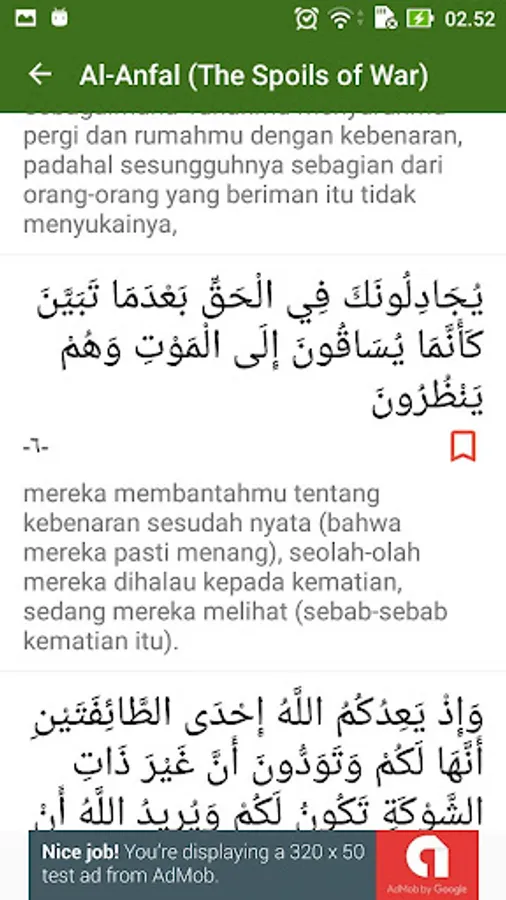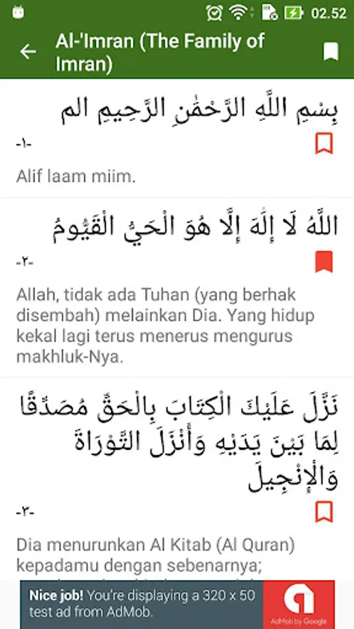 Selain itu juga terdapat fitur bookmark untuk menandai ayat sehingga Anda dapat melanjutkan bacaan dilain waktu hanya dengan sekali klik.