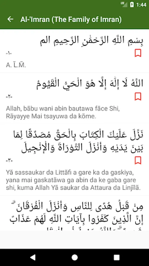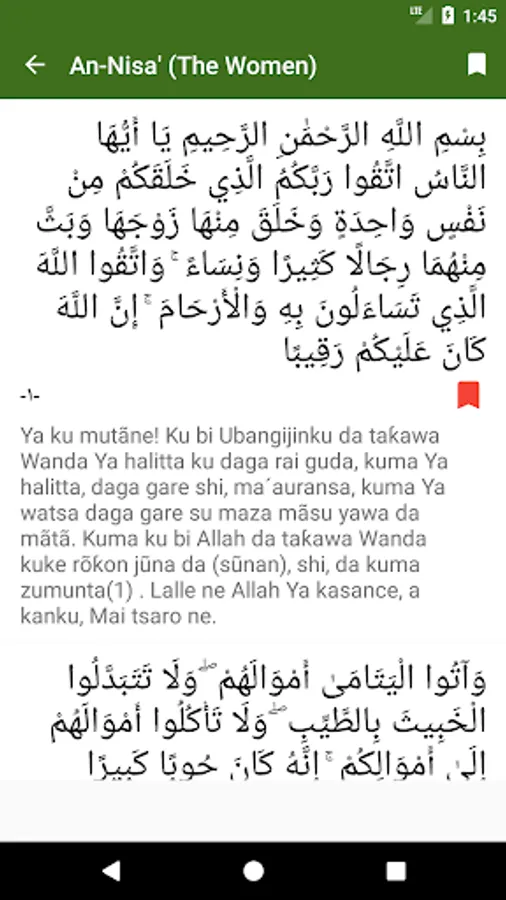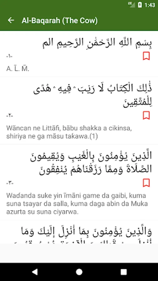Quran translation Hausa is a very light application so as not to burden your phone memory. Comes with Hausa translation provided by qurandatabase.org.