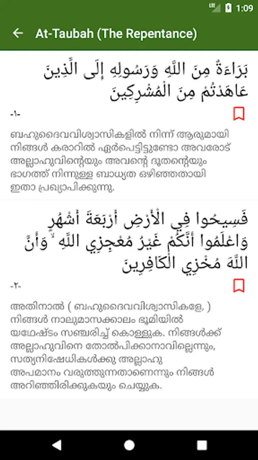 Quran translation Malayalam is a very light application so as not to burden your phone memory. Comes with Malayalam translation provided by qurandatabase.org.