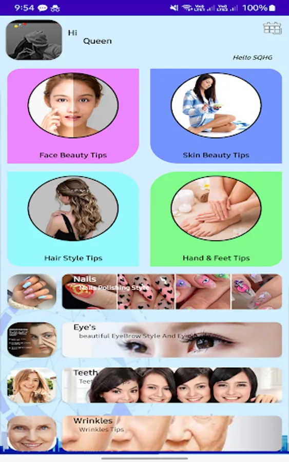 In This Beauty Tips App you Can see Homemade Face Skin Tips And Also Can See Hair Styles And etc.