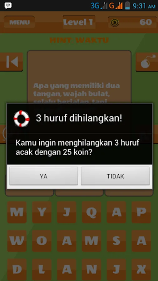 Tapiiiii, untuk menggunakan bantuan 1, 2, dan 3, kamu harus memiliki koin yang cukup. Koin akan bertambah setiap kali kamu benar menjawab pertanyaan. Namun koin kamu akan berkurang kalau kamu salah menjawab :D.