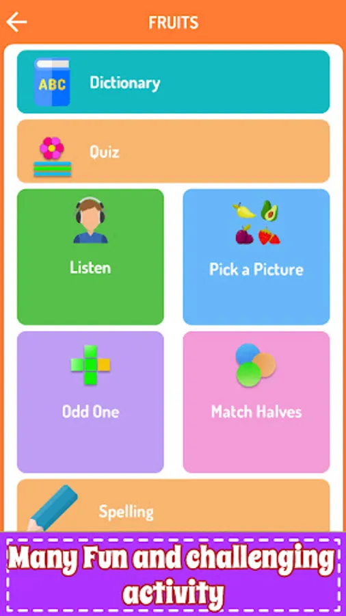 Improve your vocabulary through mini word games for kids like 1 Pic 1 Word, Shuffled word, spelling games for kids, Odd one out, Match halves, reading games for kids, etc.