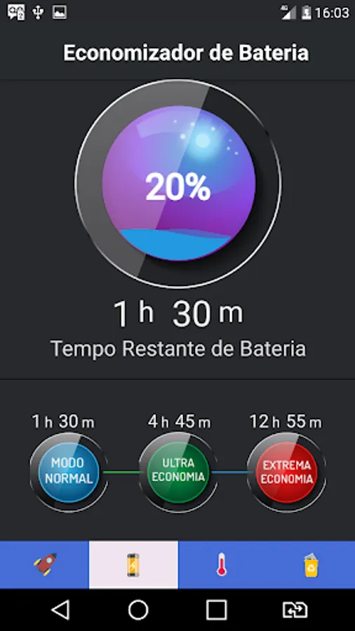 - Saves the battery power through the power modes: Normal, Ultra and Extreme Economy;