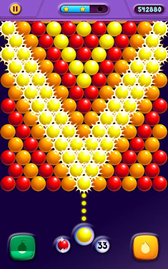 - Pop 7 bubbles in a row to get a FIREBALL that will burn every bubble on the way.