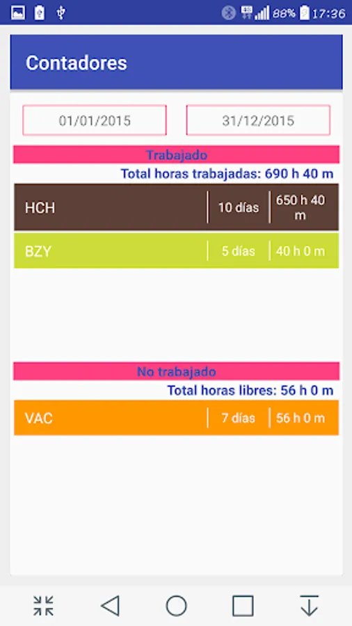 It helps you keep track of days and hours tabajadas, and you can generate reports to know the days and hours you have worked between two dates.
