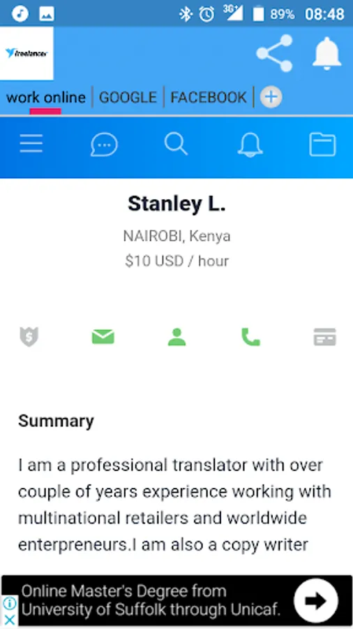 This application will enable the user to work and earn online. All you need to do is to choose the work you are capable of doing.
