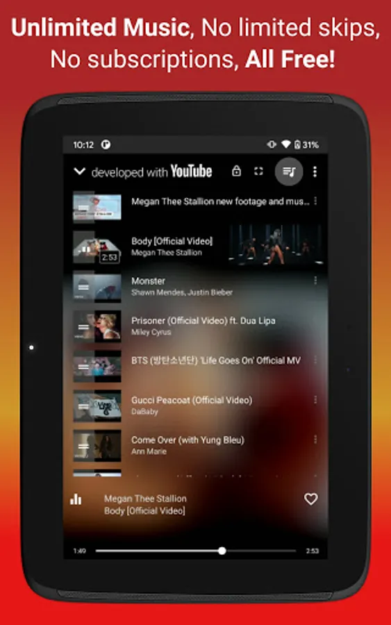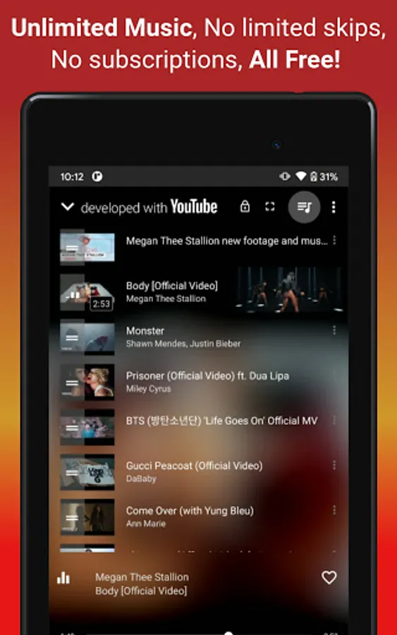 Free Music Player multitasking experience: listen to YouTube free music with a floating player while texting, chatting, gaming, using maps and any other apps. Player lock mode and battery saver prevent accidental taps and save power. It helps to listen to the music without turning off your phone. (playing online music when the screen is off is not allowed by YouTube - use download or offline or radio tabs for that)