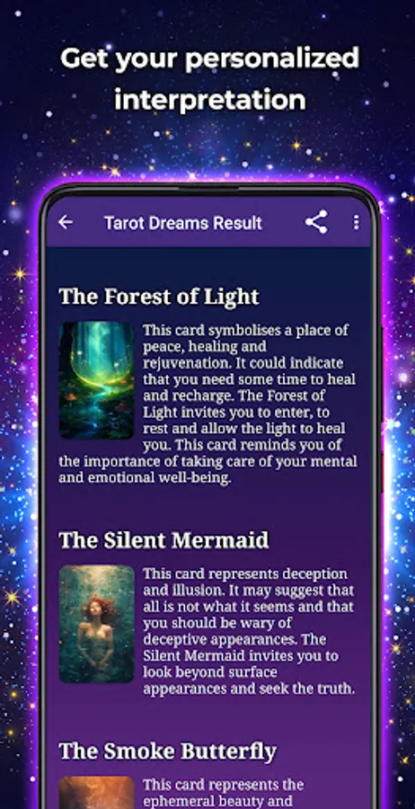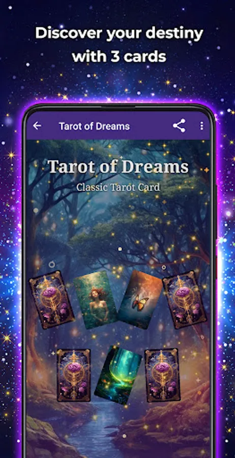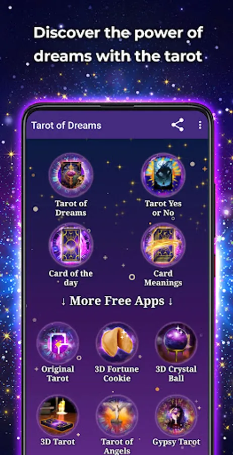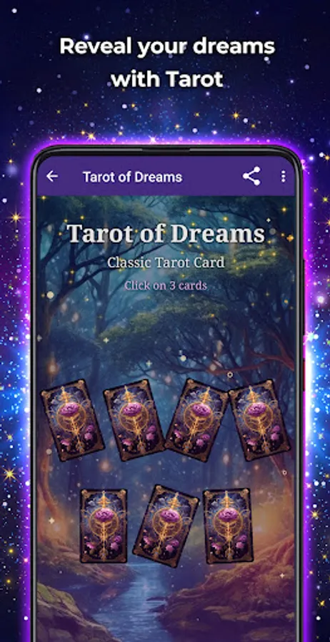 Begin a mystical journey with the fascinating Dreams Tarot app. Dive into the mysterious universe of dreams and decipher your destiny with a profound Tarot reading.