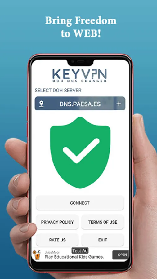 KeyVpn Dns Changer is faster than a VPN: it protects you from DNS manipulation, a type of cyber-attack used to block access to news sites, social media platforms, and messaging apps. KeyVpn Dns Changer also helps protect you against some phishing and malware attacks. It’s easy for anyone to use — just download the app and get started in a few seconds. You can leave it on and forget about it.