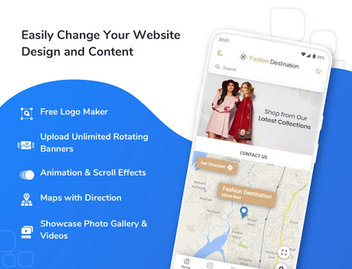 • Upload YouTube videos, Google Maps, Testimonials and Contact Us form to have an intuitive website