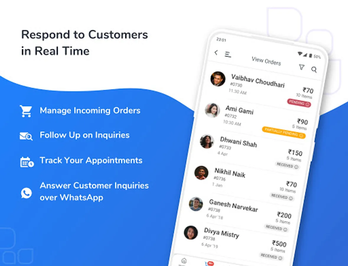 • Process orders, add customers, schedule bookings, and enable various payment modes with instant notification for each action