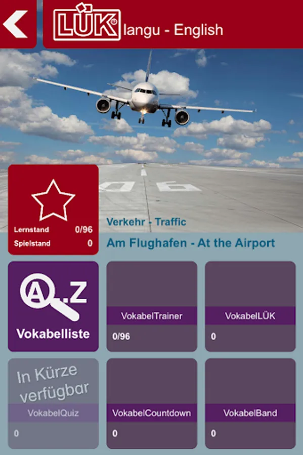 The LÜKlangu App Demo version already contains a topic for practicing and play learning the vocabulary. The basic package is available as in-app purchase for 4.99 € and has 9 more exciting topics to expand your vocabulary. In addition, the basic package contains the full dictionary with all available vocabulary and a statistical overview of the learning and game object. The purchase of the basic package allows you to expand the app to new topics. You can double as acquire two new topics.
