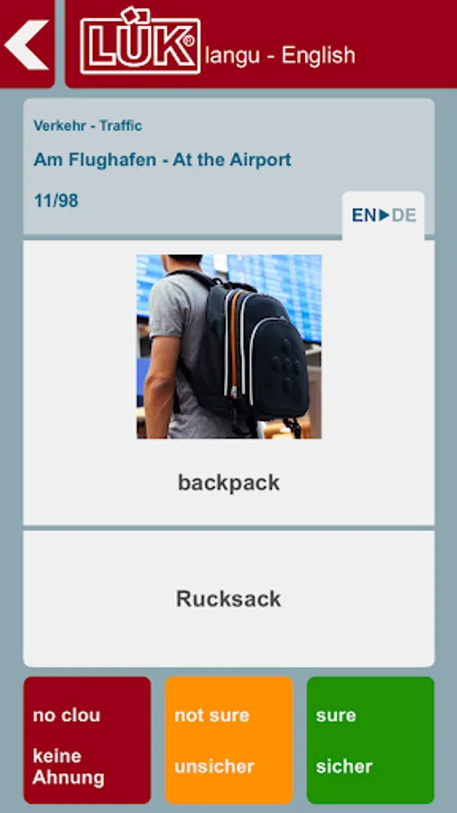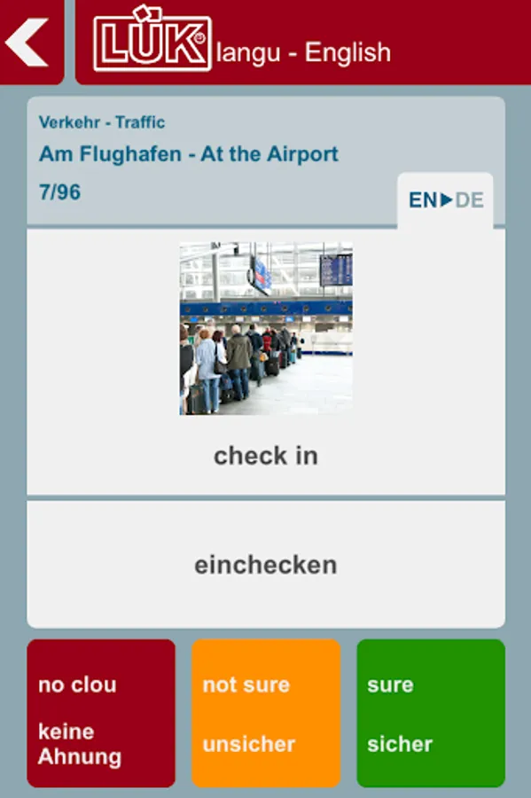 With LÜKlangu you deepen topics that are in everyday life, when traveling or in leisure time, in conversation and in professional contexts of meaning. Whether at the airport, in the hospital or in the restaurant - you are becoming safer in dealing with the English language and learn the most important vocabulary and phrases to communicate effortlessly in common everyday situations.