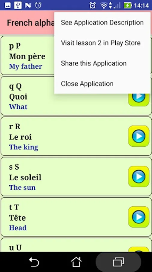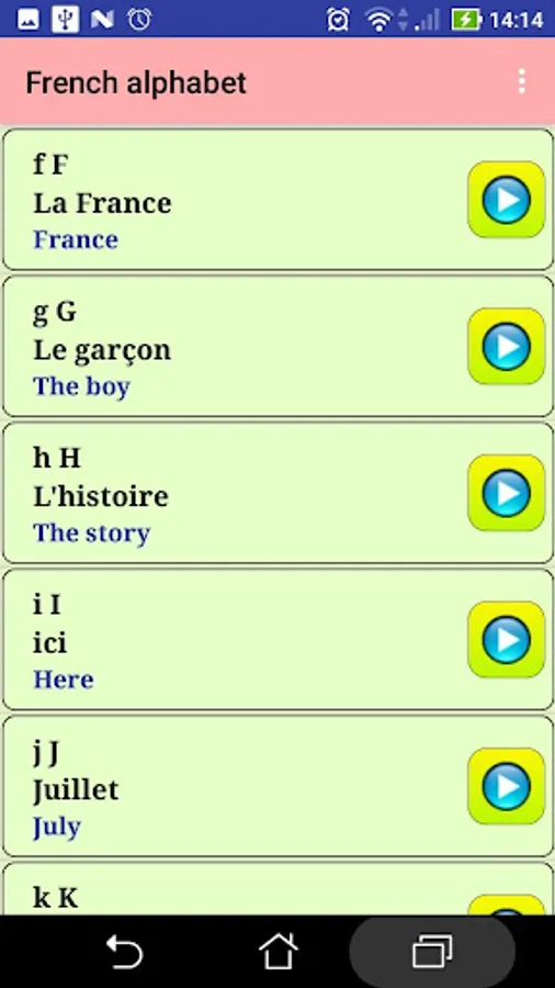 Using this application adults can easily learn the French language,You will be able to pronounce all sounds in the French language , You will learn the characters and the letters and speak by French with no effort by this free and offline application.