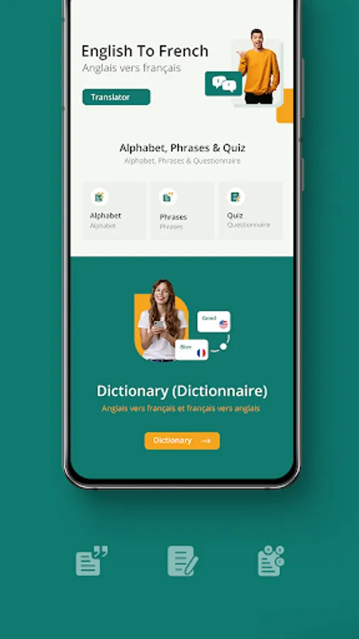 Easily translate text, words and sentences from French to English and from English to French language. This app could be used for word meanings and as a dictionary too. This Free translator can quickly translate from French to English and English to French (한국어 - 영어 번역기) words as well as complete sentences. Instant translation and the full validity of the words.