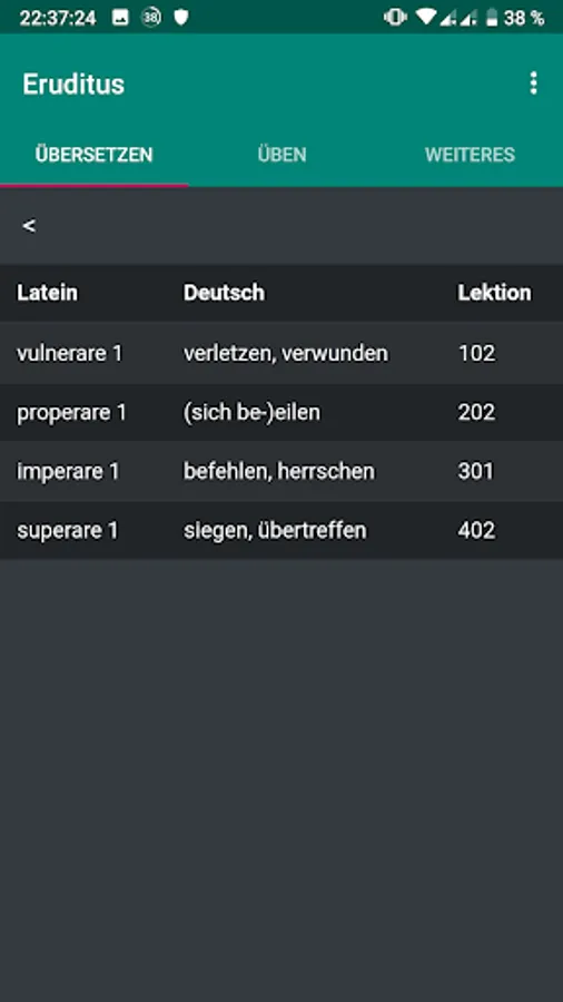 It allows you to practice and look up the vocabulary from the various lessons of the Cursus Brevis and Statio (grade 9/10 Gymnasium).