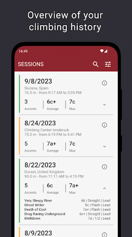 Who does not know it, you are climbing and wondering whether you have already climbed this route? An overview of all your climbed routes promises help.
