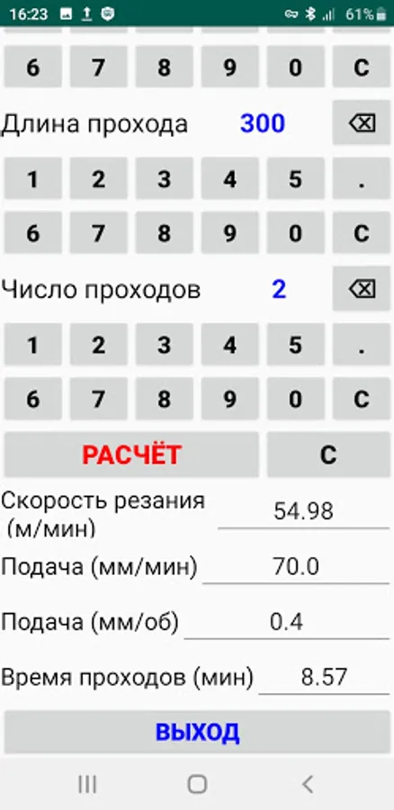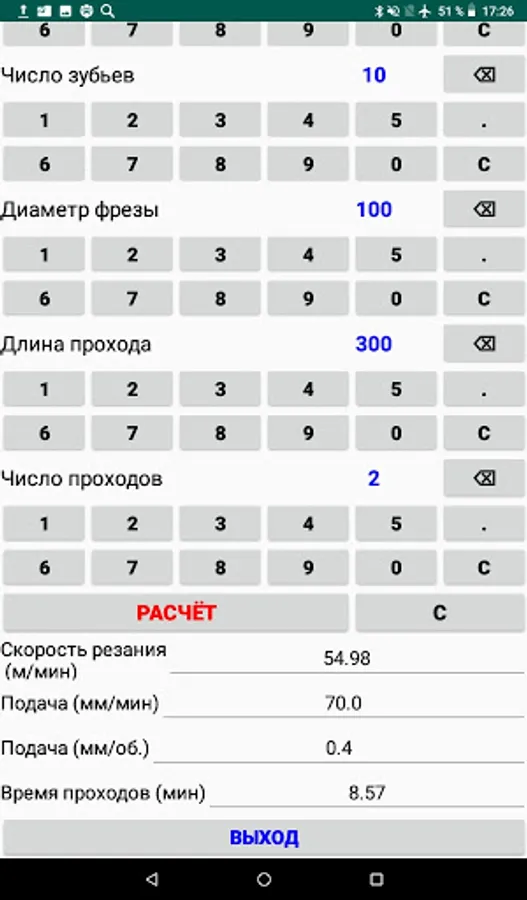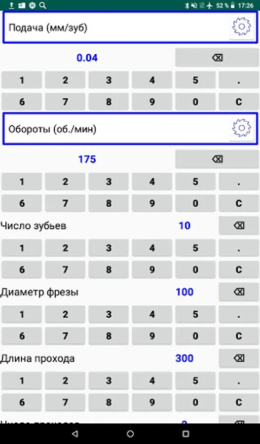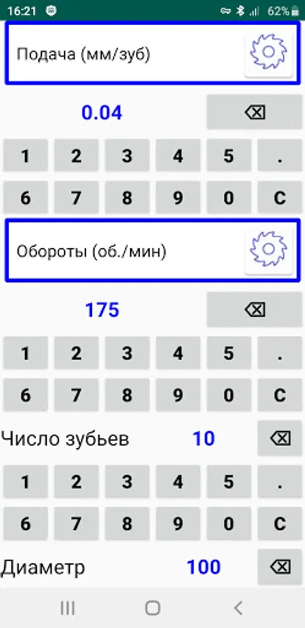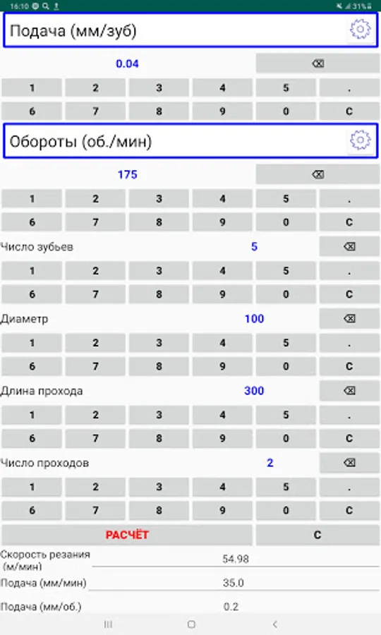 input feed (mm / tooth) calculation feed (mm / min) and (mm / rev),