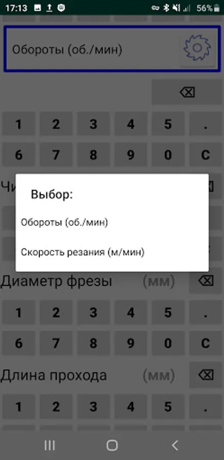 input cutting speed (m / min) calculation of revolutions (rpm),