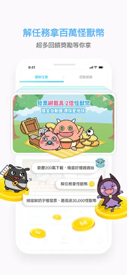 Super cute and super fun unified invoice tool! It can quickly and automatically match prizes, record consumption details, raise monsters to collect gift point cards, and exchange 7-11, family gift certificates, coffee, Village Roadshow movie tickets and other super value gifts! No ads, welcome to download.