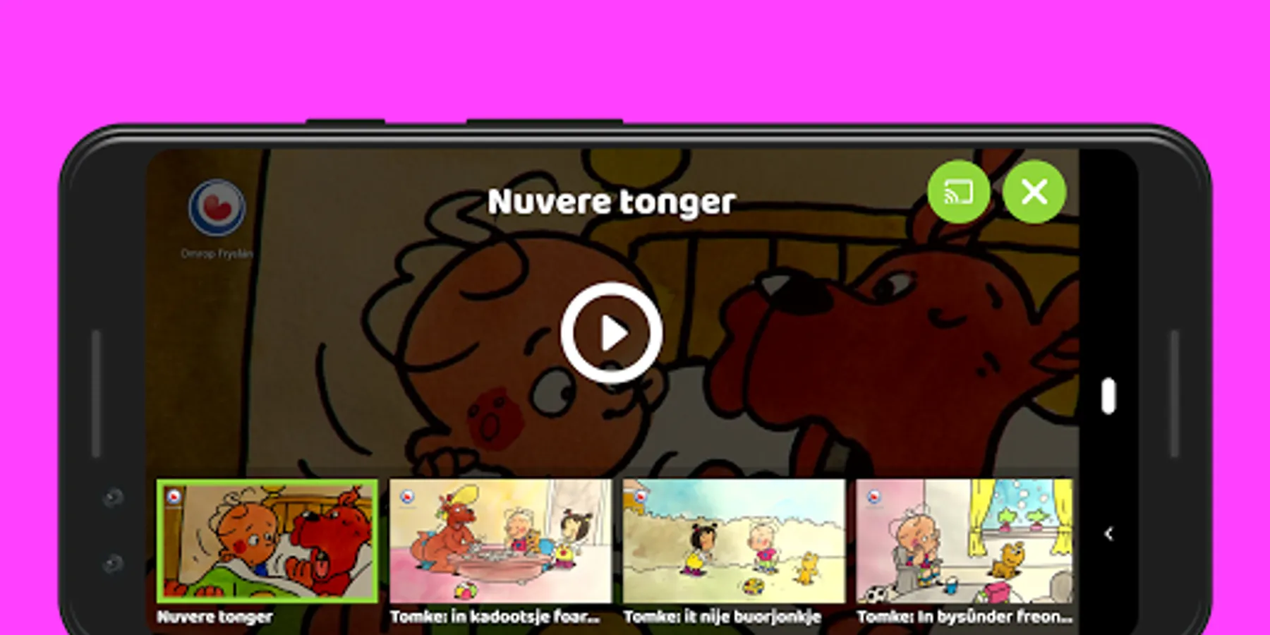 Frysk: The Tsjil app fan Omrop Fryslân is intended foar bern oant and may 12 year. It is a goal that dizze bern yn kills in the Fryske language in flawless change programs and films.