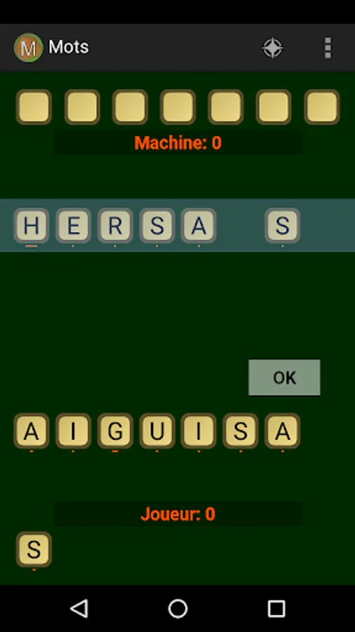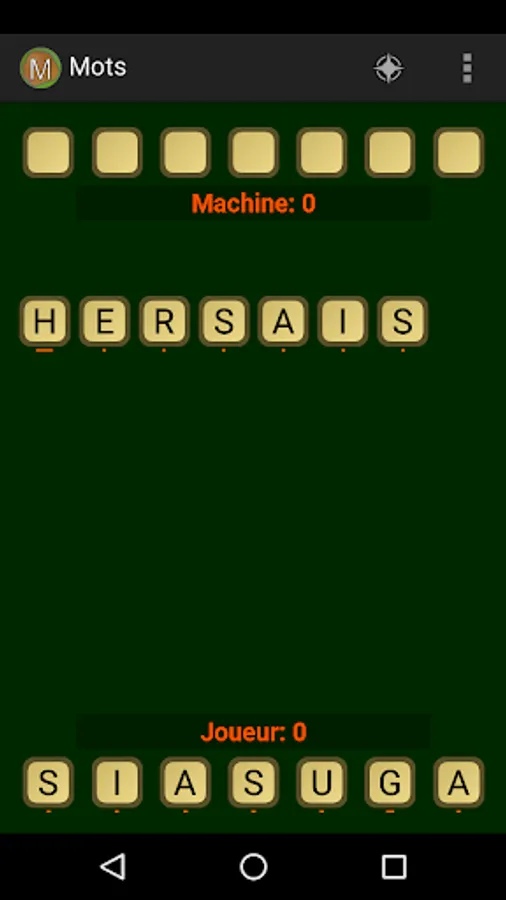 Scrabble-inspired game: each opponent (player and machine) must in turn find a word composed of letters drawn and a letter of the last word of the opponent.